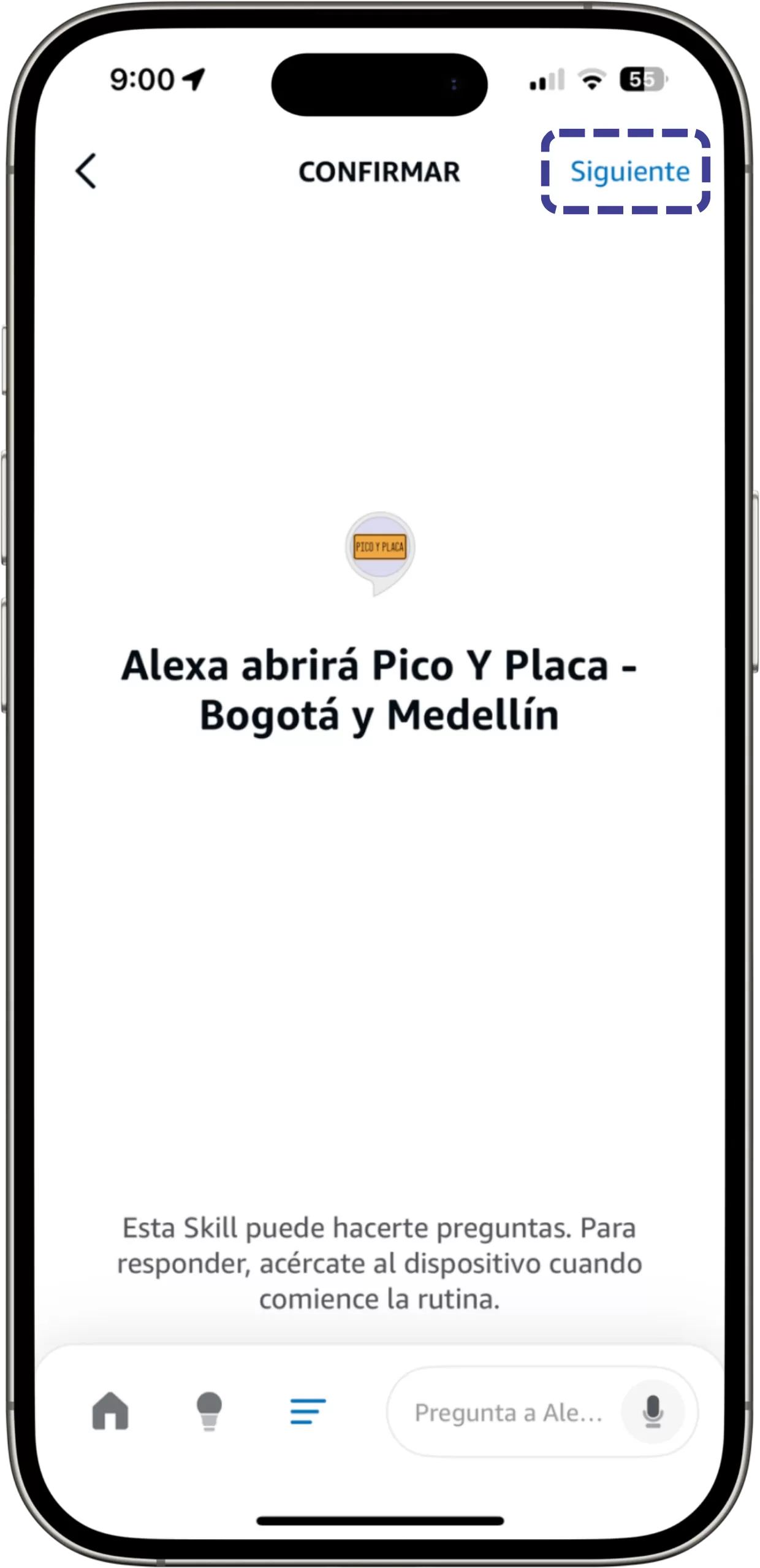 Agrega el widget a tus dispositivos Alexa con pantalla y consulta rápidamente el pico y placa del día.